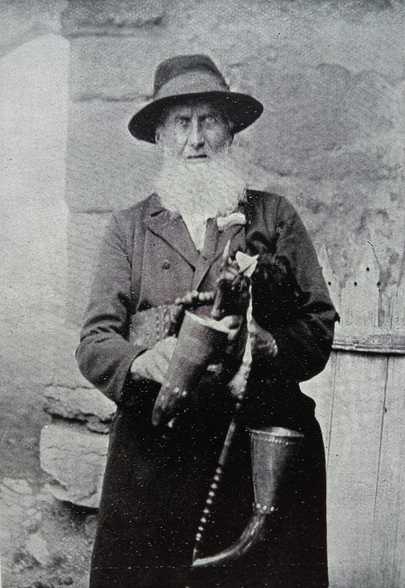 "S lítostí musíme konstatovati, že vymírají naši dudáci a s nimi pravá "česká muzika". Ještě poslední potomek dudáků strakonických obveseluje náš lid na jarmarcích. Je to 80tiletý stařeček, Václav Hlava z Mukárova u Strakonic, jenž podniká pěšky "tournée" po šumavských městech a vesnicích. Jeho rázovitá postava nám věrně zobrazuje naše bývalé dudáky strakonické, kteří - dle vypravování starcova - pocházeli téměř všichni z jednoho rodu. V jejich rodině putovaly dudy s pokolení na pokolení nejen co drahá památka rodinná, ale i co jediný prostředek k živobytí."
