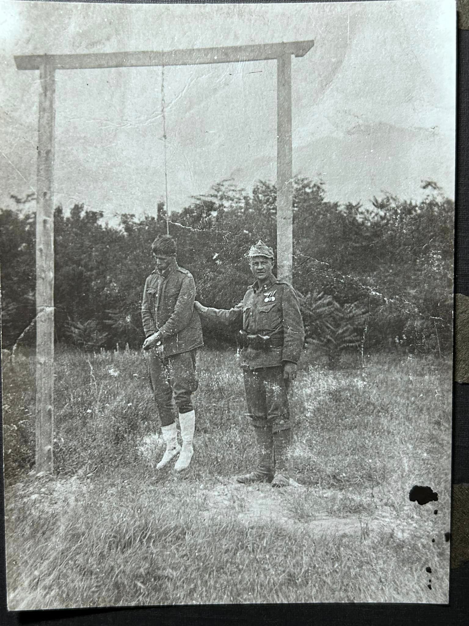 Rostislav Mazal zveřejnil parádní fotografie po svém pradědečkovi (sloužil jako lékař v Tyrolsku a později v horách nad Benátkami). Zde odvrácená strana války - bohužel se neví nic bližšího. Zda šlo o dezertéry, nebo něco v tom smyslu.
