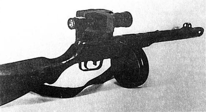 PPŠ-41 se skládací pažbou a experimentálním zaměřovačem pro noční vidění.