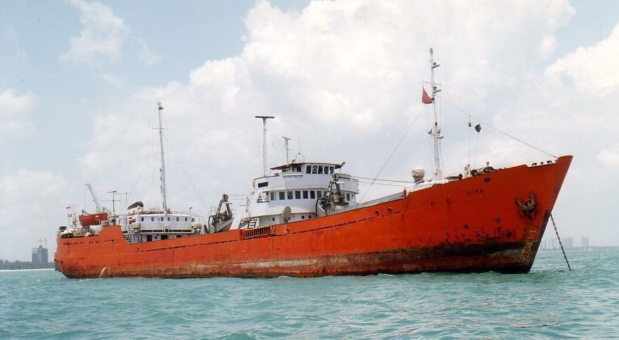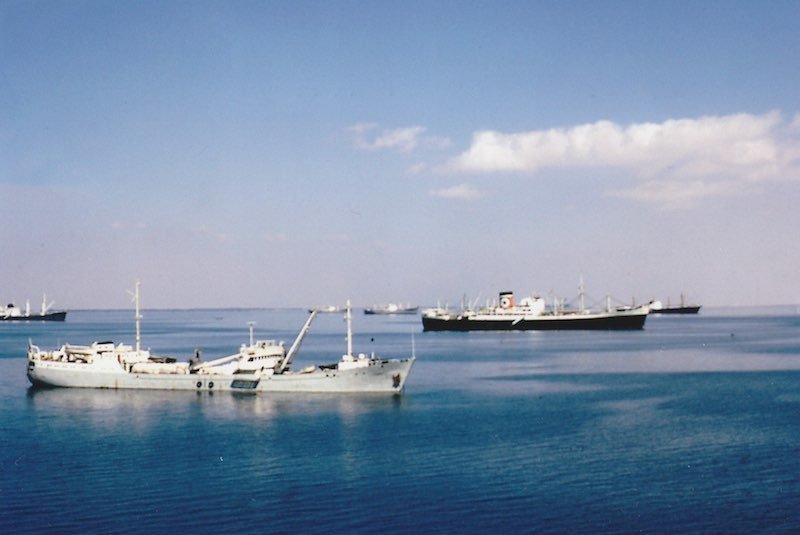 To je nějaká loď, která uvízla v Egyptě resp. v Suezu v době šesti denní války. Zůstaly tam viset několik let.