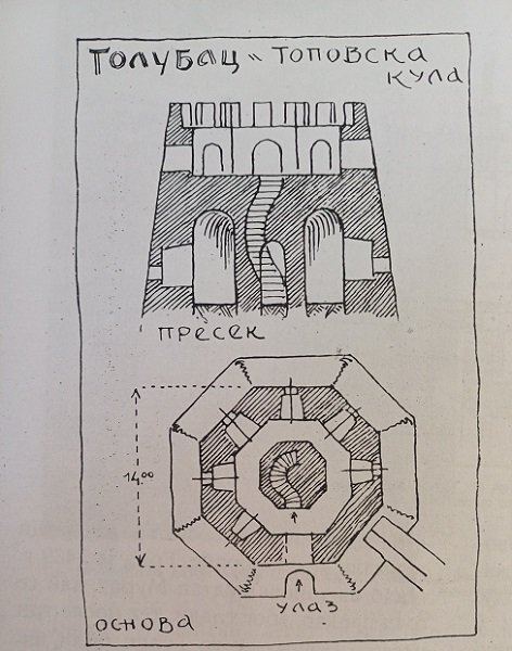 Pro stavbu středověkého hradu byl vybrán skalnatý hřebem nad Dunajem. Na nejchráněnějším a nejvyšším místě byla postavena hlavní věž. Ne zcela pravidelná šestiboká stavba byla v cca dvou třetinách své výšky ukončena cimbuřím a z plošiny uprostřed pokračovala výrazně užší okrouhlá věž, s čtverhranným vnitřním prostorem. Její poslední patro jemně přečnívá nižší úrovně, není ale vysazeno na krakorcích. Celek je známý jako Šešir kula – Čepicová věž (1). Tradičně označovaná jako donjon. Já tam tedy moc prostoru pro bydlení nevidím, ale budiž. Vstup byl veden ze severní, nejvíce chráněné strany po skalnatém hřebeni v úrovni přízemí. Odtud stoupalo schodiště v síle zdi do vyššího patra, odkud vyrůstala ona okrouhlá nástavba. Jak vypadala nižší patra věže nevíme, oproti vstupu směrem do nádvoří mohla mít tak 3-4 „suterénní“ podlaží. Nezachovali se ale náznaky žádných otvorů, oken, střílen. Okrouhlá část má poměrně malý vnitřní prostor 2,5x2,5 m se schodištěm opět v síle zdi. Jak tedy tento donjon vypadal v době svého vzniku nejsme schopni určit. Cesta k věži je na videu na konci článku.