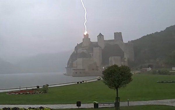 21. srpna 2022 dostala Šešir kula zásah bleskem. Screen z videa