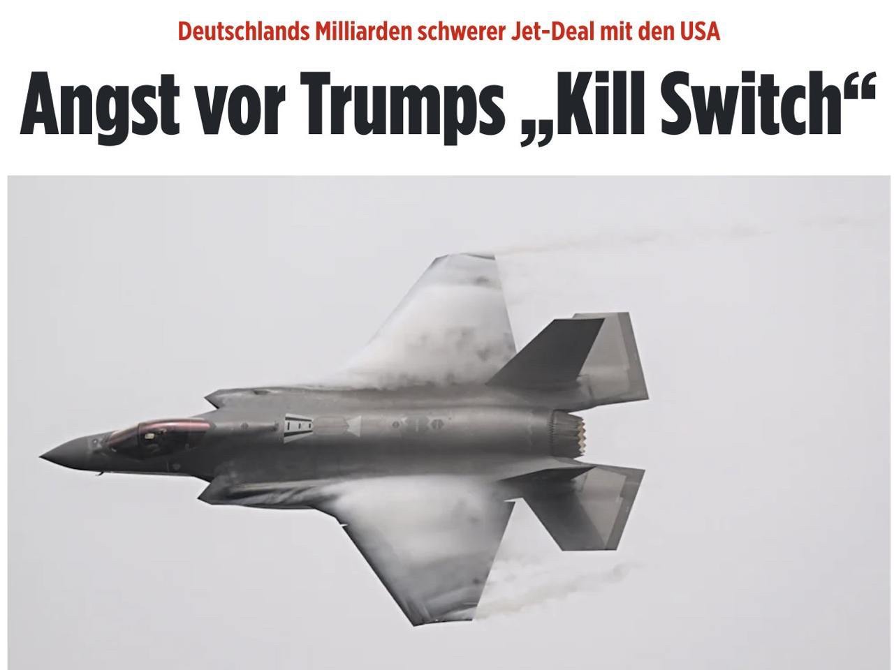 Německo se obává, že Trump může zakoupené stíhačky proměnit v hromadu šrotu - Bild. Německo plánuje koupit od USA 35 stíhaček F-35A za více než 8 miliard eur. Rostou však obavy, že by Trump mohl tyto letouny na dálku vyřadit z provozu. Letouny by totiž mohly mít zabudovaný tzv. "Kill Switch" - doslova "zabijácký vypínač". Spínač, který mohou USA aktivovat. "Kill Switch v letounech F-35 je více než jen fáma. Ke spuštění může dojít prostřednictvím systému plánování bojových misí, pak letoun prostě zůstane na zemi," uvedl Joachim Schranzhofer, vedoucí oddělení komunikace německé zbrojní společnosti Hensoldt. Vlivný bývalý diplomat a prezident Nadace Mnichovské bezpečnostní konference Wolfgang Ischinger varuje: "Pokud se obáváme, že by USA mohly v budoucnu udělat německým letounům F-35 to, co nyní dělají Ukrajině, mohli bychom uvažovat o zrušení smlouvy."