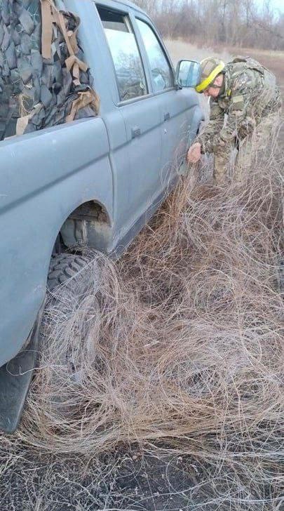 Válku budoucnosti jsem si představoval asi trochu jinak, ale co už. Na fotografii vidíme ukrajinský pickup s koly zapletenými do optických vláken z FPV dronů, což krásně ukazuje, jak rozšířené jsou dnes drony s optickými vlákny v přední linii. Zde kdesi na Doněcké frontě.