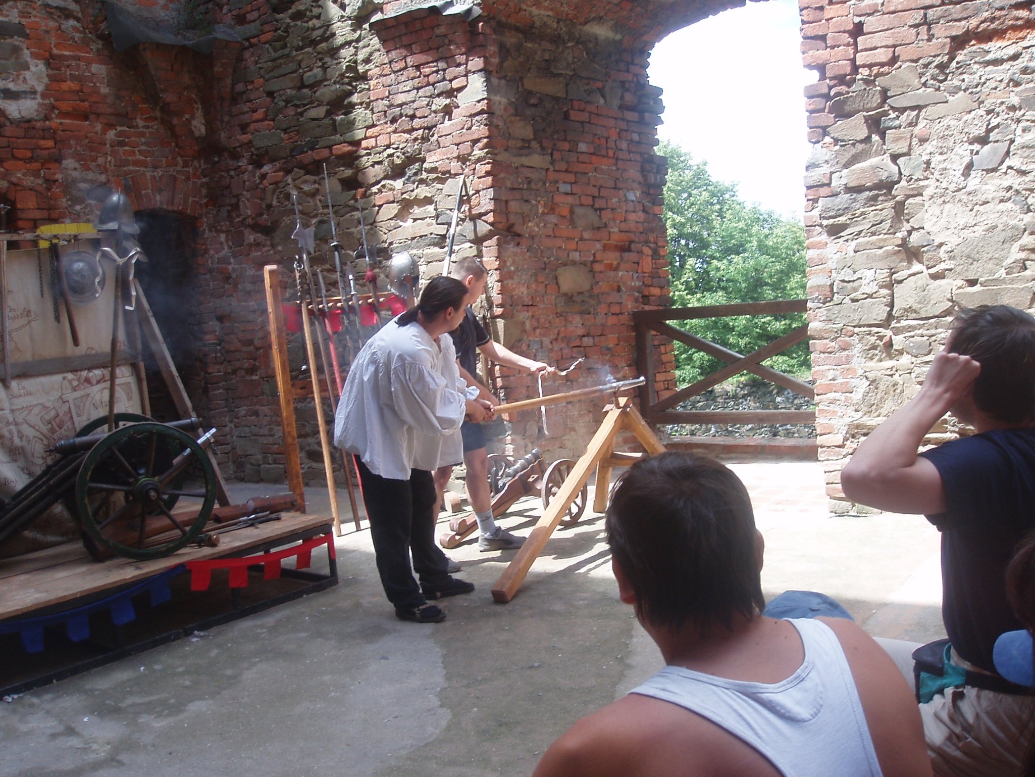 U Helfštýna jsou nějaké půlkruhové bašty se střílnami podél hradeb, ale i střílny u věží směřující do nádvoří. Záleží, jakou stavební etapu bereš do úvahy.