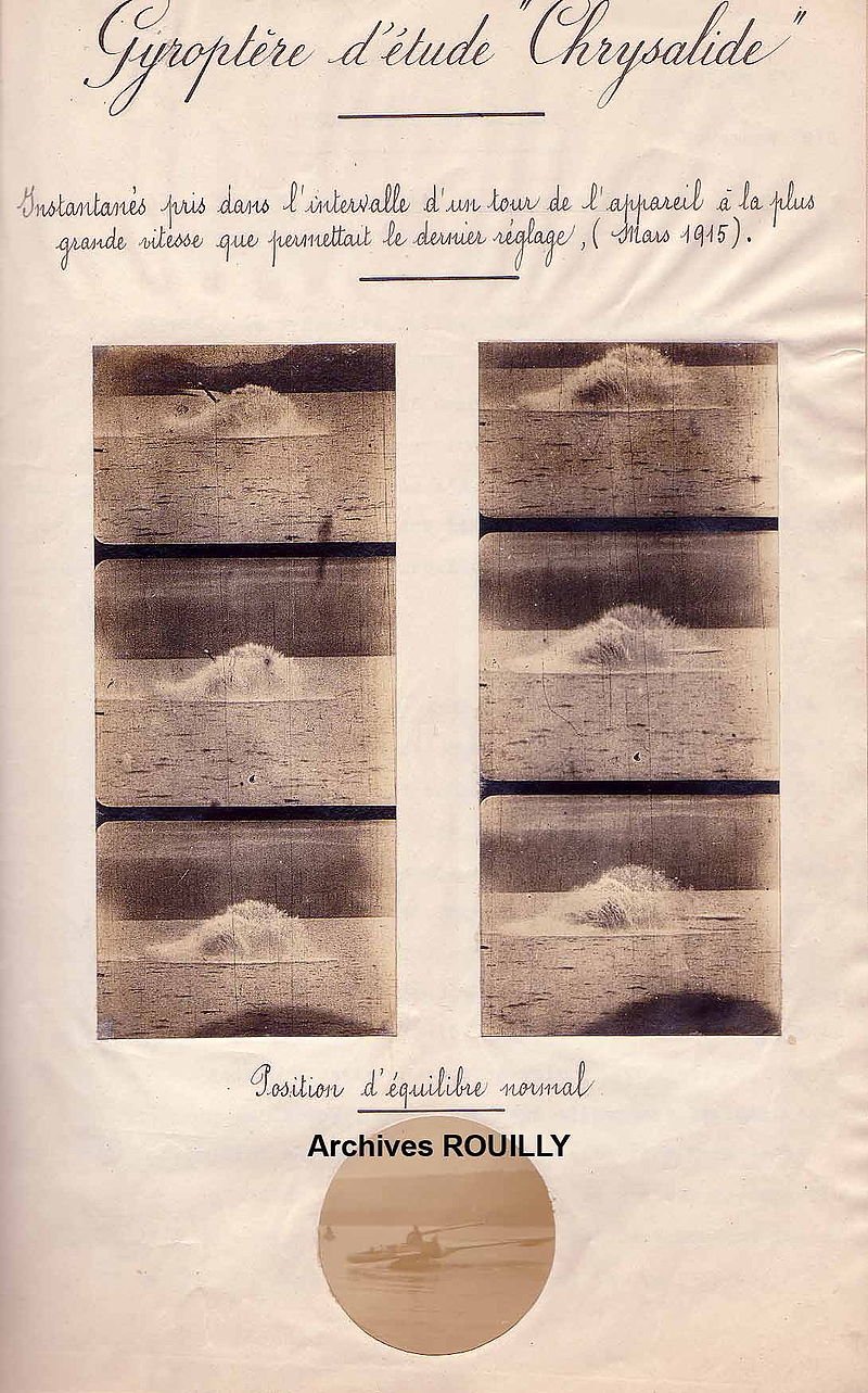 Jako malí jsme si snad všichni hráli s nažkami javoru, drobné "vrtulky" vyhazované do vzduchu se roztáčely a pomalu padaly k zemi. Tento autorotací stabilizovaný systém navíc částečně dovoluje i horizontální let. No a právě myšlenkou létat jen s jediným křídlem se před více než stoletím zabývali dva mladí francouzští inženýři Alphonse Papin a Didier Rouilly. Svůj projekt představili 14. ledna 1910 Akademii věd a dne 6. května 1911 si podali dva patenty, ve kterých byl proudící vzduch použit k pohonu. O letoun projevila zájem armáda, která financovala studie potřebné k realizaci konceptu. U prototypu z roku 1913, pojmenovaného "Chrysalide", se kolem kokpitu otáčelo křídlo s rozpětím 17 metrů. Rotační motor, 9válcový hvězdicový Rhône s výkonem 80 koní, byl umístěn na druhé straně středu otáčení procházejícího kabinou a vyvažoval křídlo jako u semínka javoru. Tento letecký motor, který se otáčel rychlostí 1 200 otáček za minutu, aktivoval ventilátor, který nasával shora vzduch a poháněl jej rychlostí 100 m/s ke špičce dutého křídla, odkud unikal oválným otvorem umístěným kolmo ke křídlu. Křídlo se následně otáčelo prouděním unikajícího vzduchu. Část vzduchu byla odváděna k aktivaci pomocné trysky, která udržovala kokpit stabilní a jejíž orientaci mohl pilot ovládat.