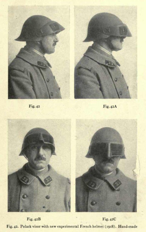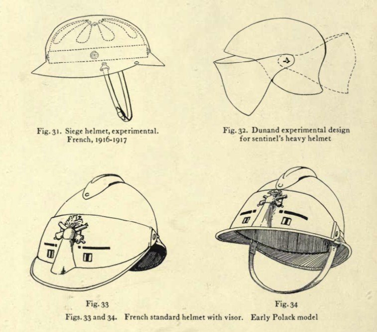 Moc pěkný obrázek z novin, kdy mají francouzští vojáci nasazeny zmíněné podčepicové puklice, přezdívané "Soup Bowl" (polévková miska) které navrhl generál Adrian.