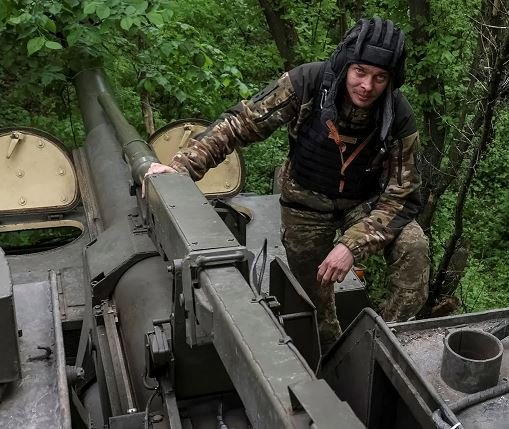 Ukrajinská samohybná houfnice ShKH vz.77 Dana ráže 152 mm pojmenovaná "Manjunja", sloužící u 110. samostatné mechanizované brigády na frontě u Avdijivky v Doněcké oblasti.