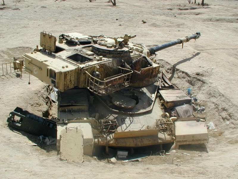 Kuvajtský tank Chieftain zničený v srpnu 1990 během irácké invaze do Kuvajtu. Tehdy tyto tanky 35. obrněné brigády zadržovaly 10 hodin postupující divize Irácké republikánské gardy, než byly nuceny ustoupit na jih.