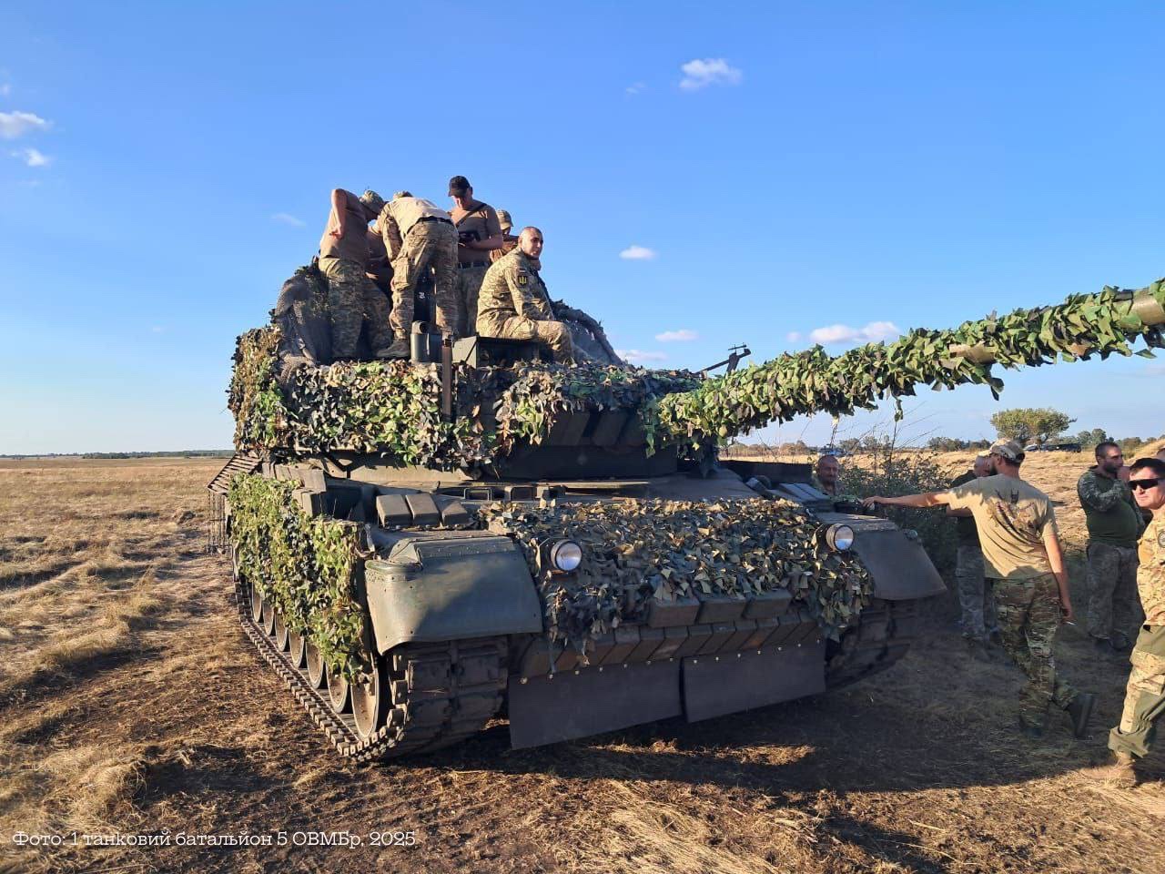 Nedávný snímek silně upraveného Leopardu 1A5 ukrajinské 5. těžké mechanizované brigády.