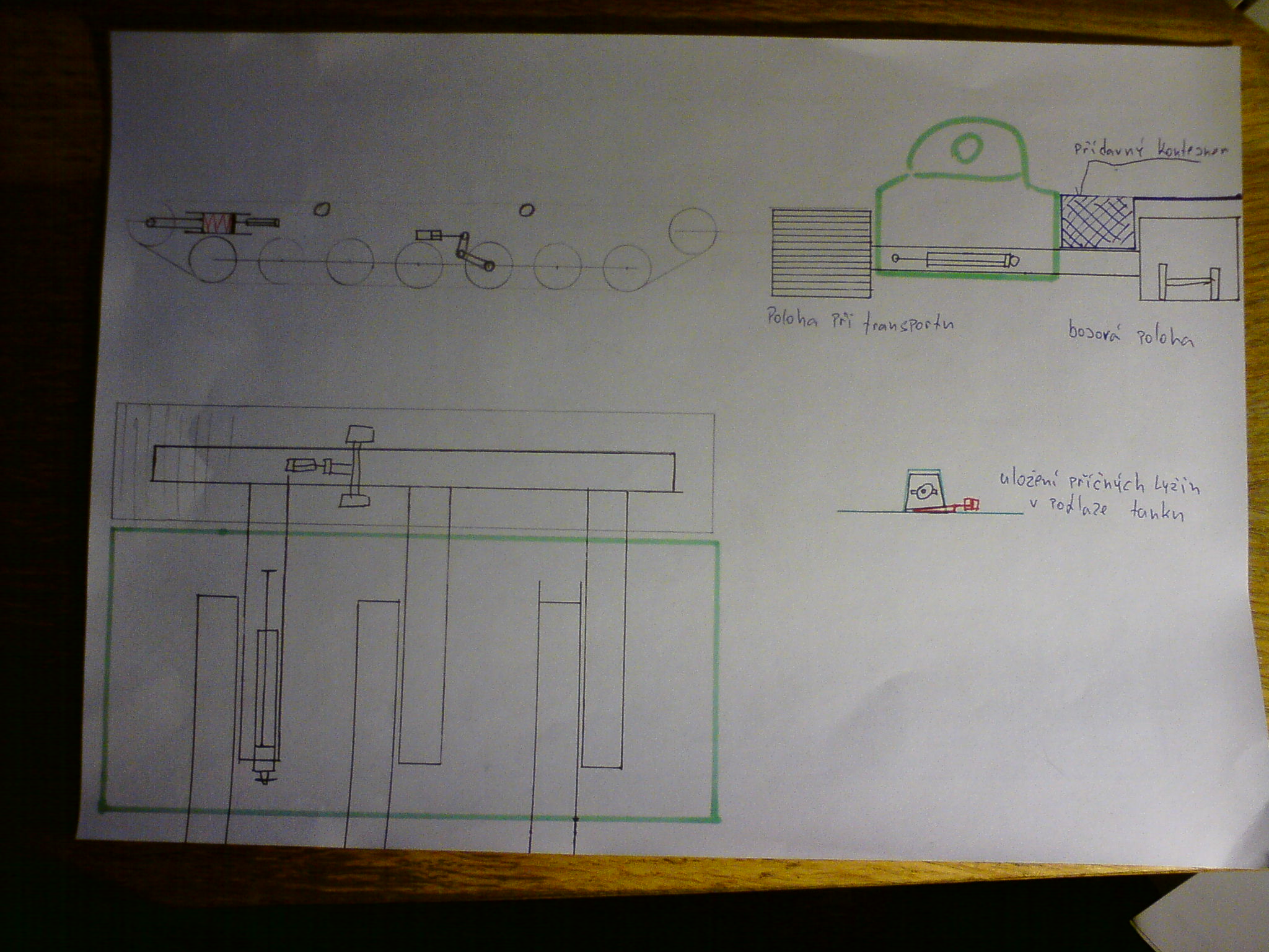 Ten rozšiřitelný podvozek bych taky nezatracoval. Až se dostanu domů, zkusím nějaký návrh hodit na papír, aby bylo trochu povědomí o tom, co vlastně navrhuju. Bylo by to sice dobré jen pro transport na železnici/trajleru, ale je v tom jistá modularita a snížení transportní hmotnosti, resp. rozložení hmotnosti tanku na víc "balíků"