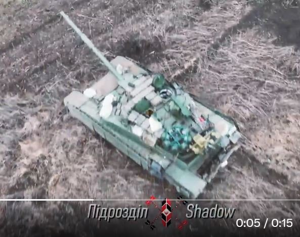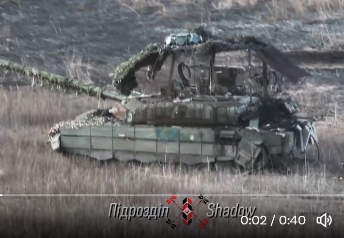 Pozoruhodně vymazlený T-90M likvidovaný americkým tříštivým granátem M67, vrženým z malého dronu, přímo do prostoru řidiče. Zajímavé je, že tank (opuštěný) má na "klícce" usazenou i nějakou pokročilejší verzi protidronové rušičky.