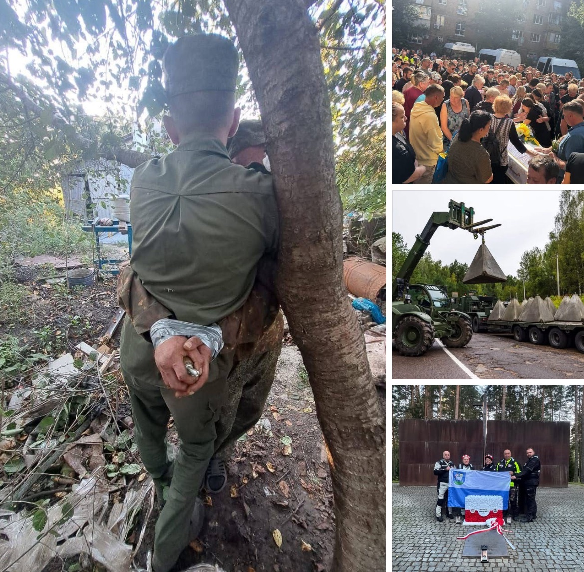 Foto: Rusové zveřejnili fotku dvou ukrajinských zajatců, které připoutali k sobě a do ruky jim vložili odjištěné granáty. | Kyjev se loučí s oběťmi náletu. | Litva opevňuje hranici s Ruském. | Polští motorkáři v Rusku.