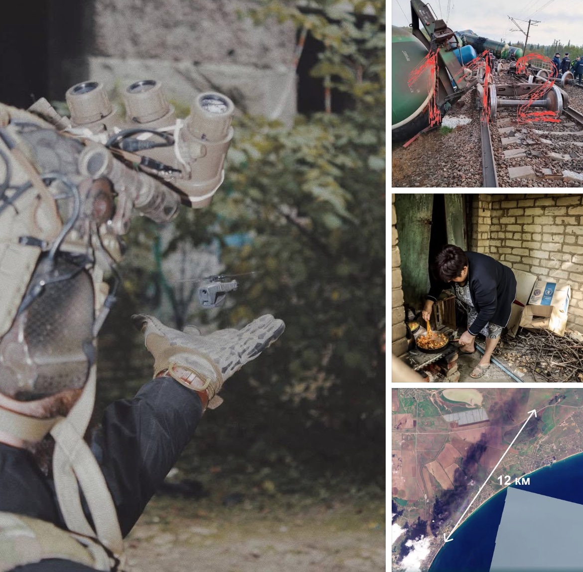 Foto: S brokovnicí proti dronům na frontě. | Noví členové speciálních jednotek. | Porovnání velikostí ruských kamikadze dronů a ukrajinských interceptorů. | Švédská loď a stíhačka sledují ruskou ponorku v Baltském moři.