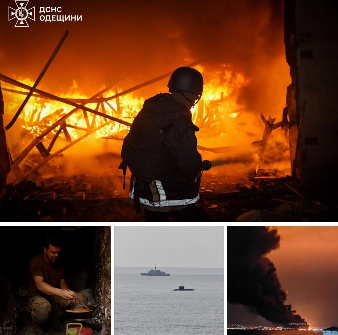 Foto: Noc v Oděse. | Kuchyň na frontě. | Ruská ponorka u pobřeží Francie. | Feodosie.