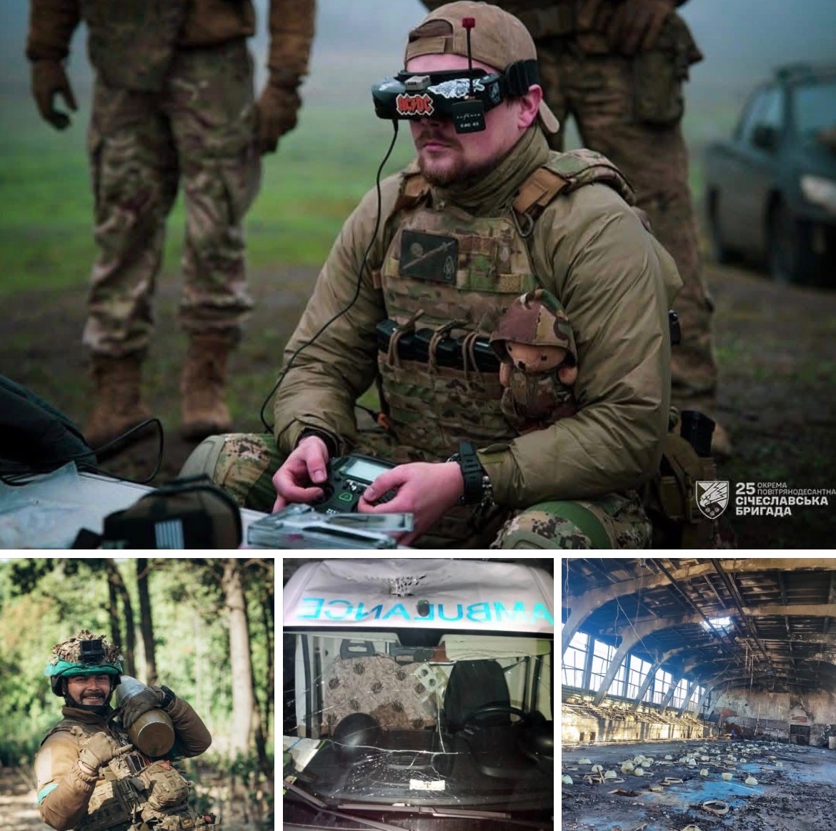 Foto: Výcvik v pilotování dronů. | Ukrajinský ženista. | Rusové zasáhli v Chersonu další sanitku. | Zasažená sportovní hala u Sum.