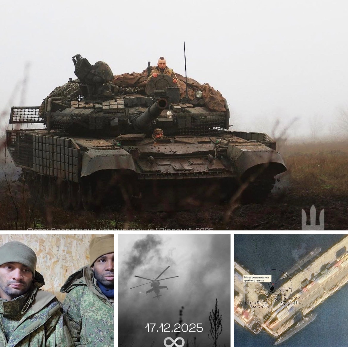Foto: Kořistní T-90A. | Zajatí Kolumbijci. | R.I.P. | Poškození přístavu v Novorossijsku a vedle stojící ponorka.