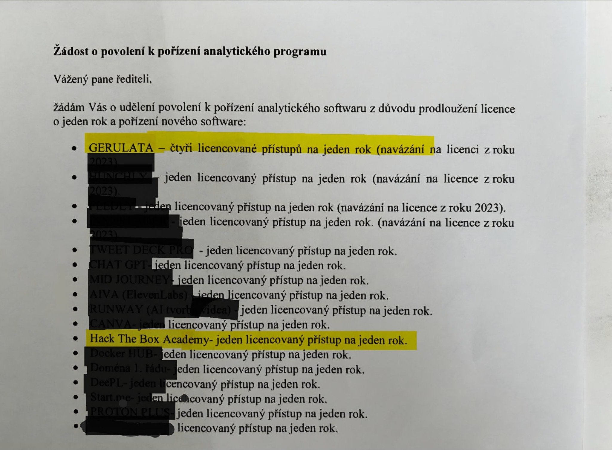 Poslanec a místopředseda výboru pro obranu za hnutí ANO Pavel Růžička ve středu na sociální síti X zveřejnil seznam software, které požadují nakoupit ozbrojené síly. Byť se poslanec snažil názvy systémů utajit černými páskami, tak přesto jsou čitelné. „Třeba abych upozornil na některé nepravosti u speciálních sil, kterých si novináři nevšímají,“ reagoval Růžička na dotaz iDNES.cz, proč špatně začerněný seznam zveřejnil.