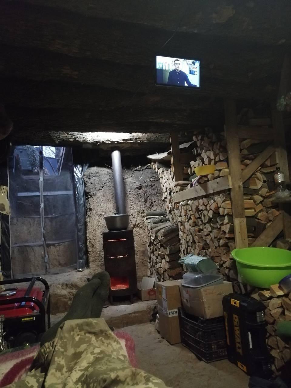 Moc pěkně zařízený ukrajinský bunkr - patrně trochu dál od první linie nebo na klidnějším úseku fronty.