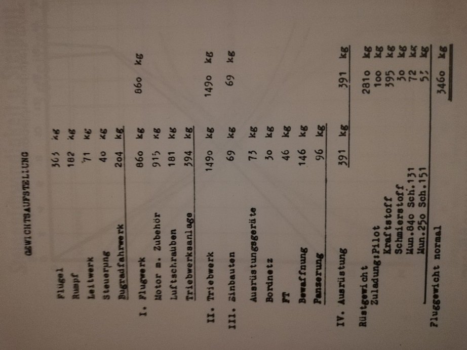 První hmotnost je pro Me 309 tak jak byl na papíře představen z konce roku 1941. Rozepsání váhy je zde :