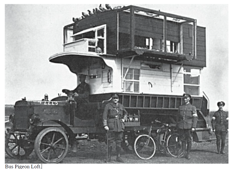 Za první světové války se k zajištění spojení hojně používali poštovní holuby. Zde je mobilní holubník: