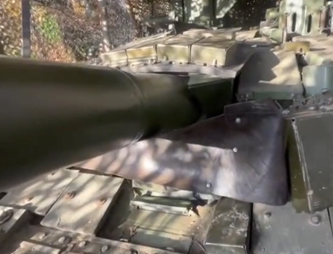 Ruský tank T-90M "ježek" s rozpletenými ocelovými lany instalovanými ve velké vzdálenosti od sebe. Těžká ocelová lana sice zatěžují rádiový přenos, ale poskytují nejlepší dostupnou ochranu před ukrajinskými FPV drony s kumulativní hlavicí.