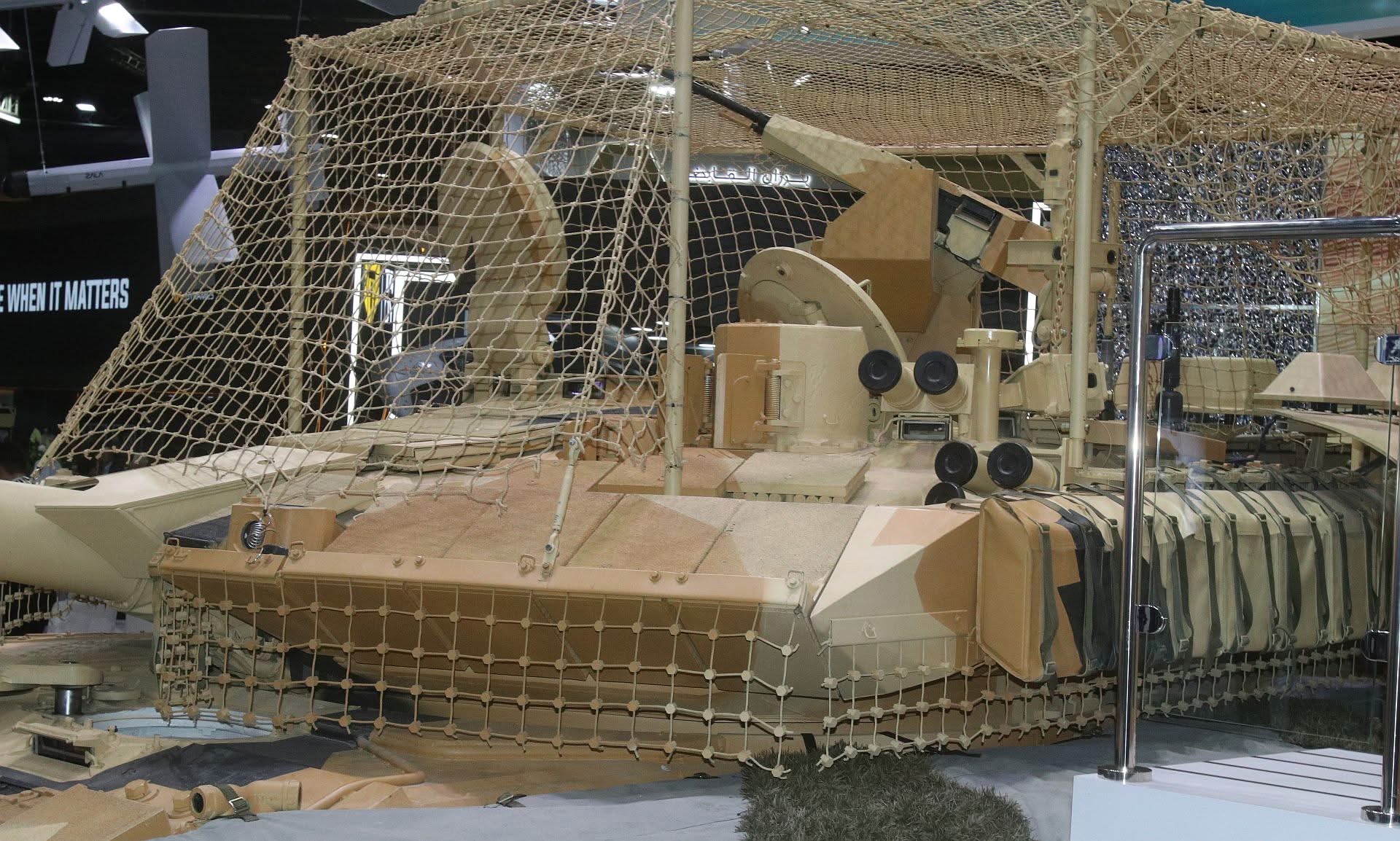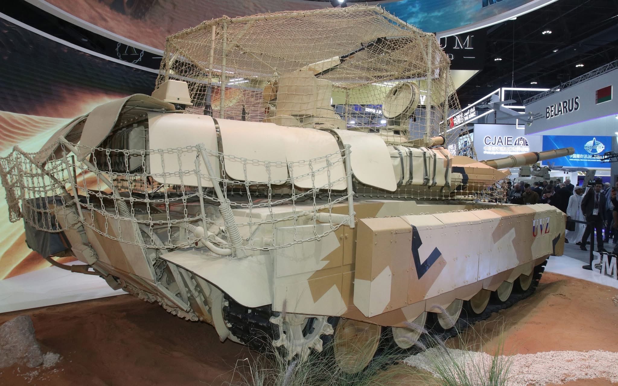 Modernizovaný tank T-90MS firmy Uralvagonzavod vystavený v ruském pavilonu na zbrojním veletrhu IDEX 2025, jenž proběhl v únoru letošního roku v v Abú Zabí ve Spojených arabských emirátech. "Je chráněn s ohledem na bojové zkušenosti s bojem proti celé škále moderních protitankových zbraní" Uvádí se v tiskové zprávě ruského exportéra.