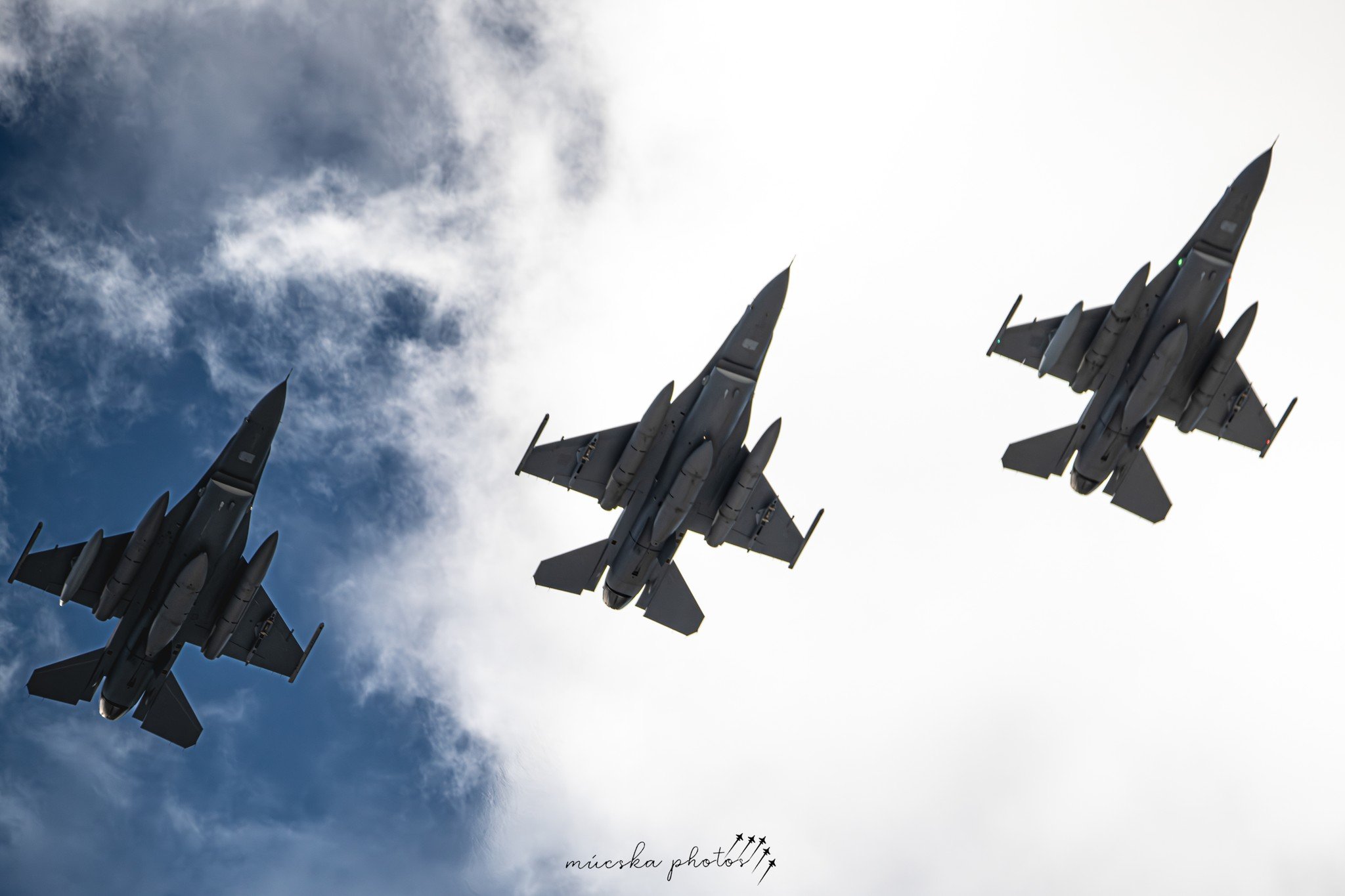 3x F-16C (takže druhá spárka ostala ešte v USA) č. 1010, 1011, 1012 sú už doma. Dnes hnusný studený vetrisko, klobúk dolu pred všetkými spottermi, ktorí to vydržali a urobili super fotky: