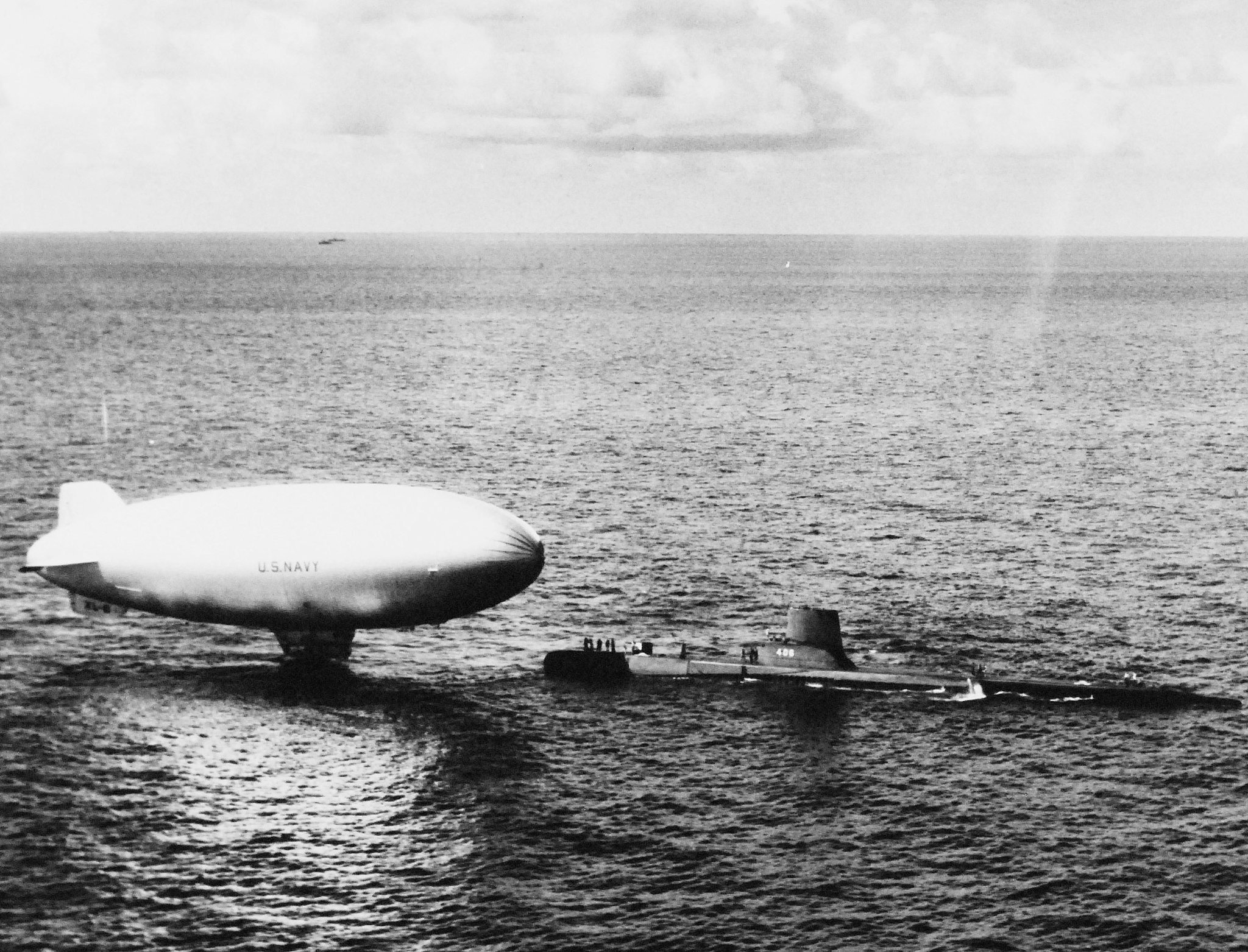 R. 1952 SS-406 Sea Poacher odtáhla 40Nm od pobřeží zneschopněnou vzducholoď K-86 na Key West. Zde foto po úspěšné záchraně: