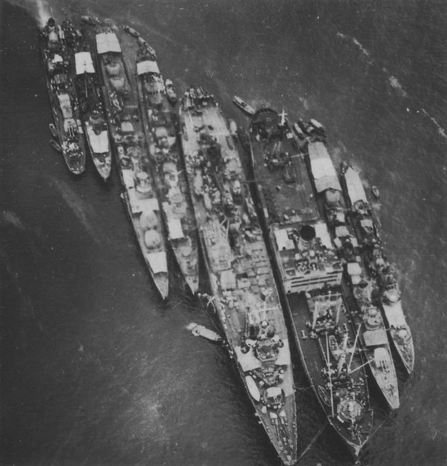 Zdá se mi to nebo opravdu tomu torpédoborci úplně vlevo chybí celá příď?