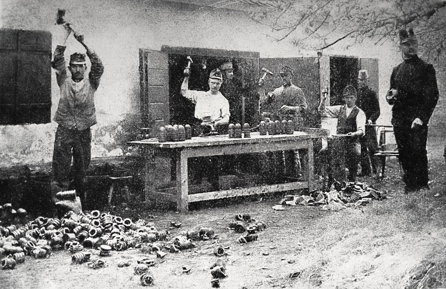 rozbíjení obalů granátových střel. Prý snad oddělují olověný plášť z litinového těla pruských 8 nebo 9 cm granátů.