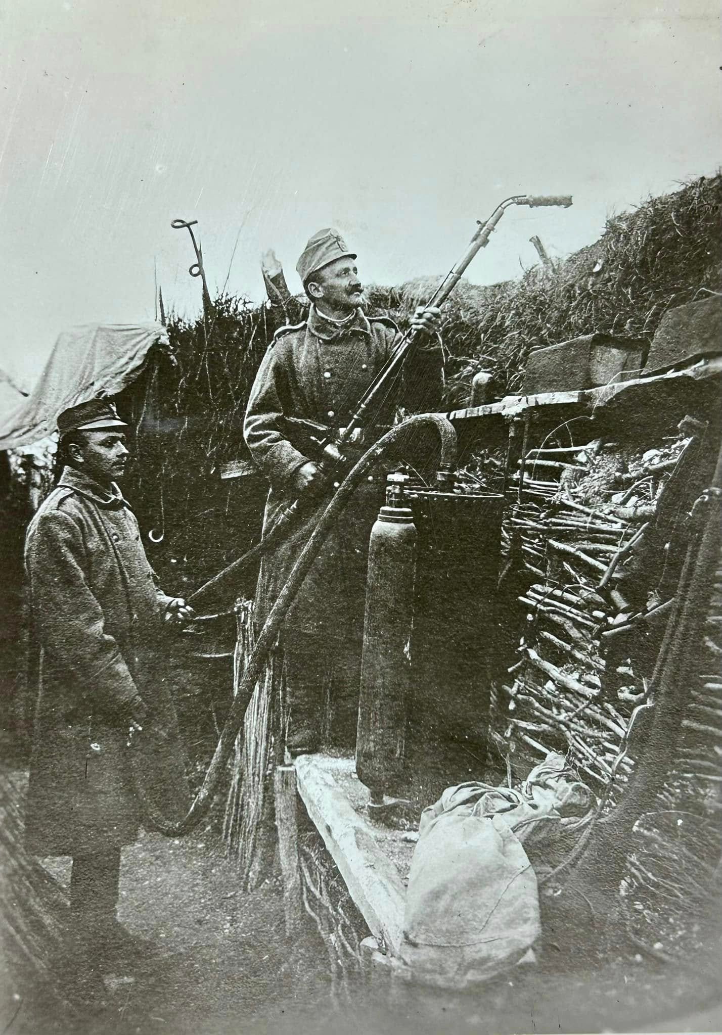 fotografie rakousko-uherského vojáka s plamenometem.
