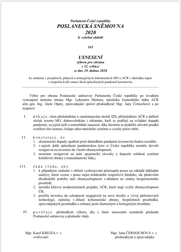 Nesher píše:Výbor pro obranu vyzval vládu, aby nebrala armádě peníze na modernizaci.