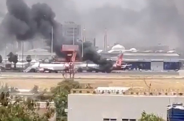 Niekoľko lietadiel na letisku zhorelo BADR prišiel o nejaké 737 CL aj Ukrajinci a aj saudská A 330 dostala zásah Terminal cez ktorý prechádzali tisícky ľudí dostal zásah a zhorel ako papier
