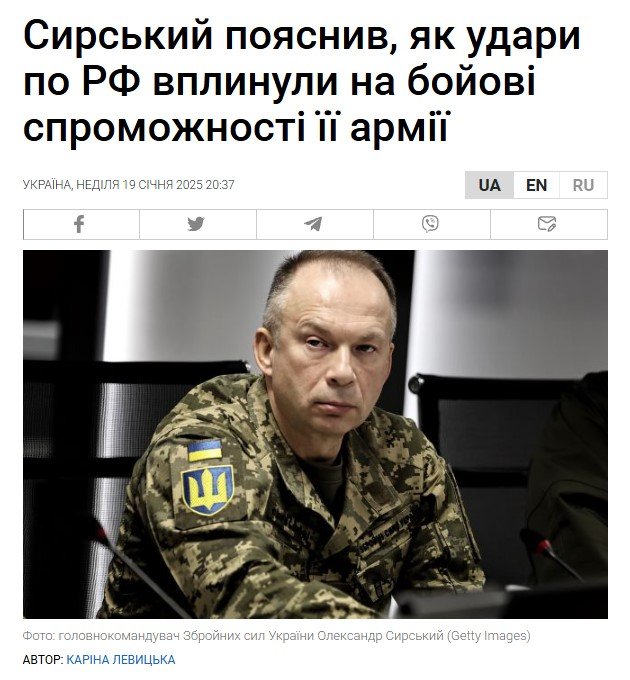 Vrchní velitel ukrajinských ozbrojených sil generálplukovník Oleksandr Syrskyj vyzval administrativu amerického prezidenta Donalda Trumpa, aby dodala Ukrajině rakety delšího doletu a zrušila všechna omezení týkající se amerických zbraní. V rozhovoru pro list The Washington Post Syrskyj řekl, že Ukrajina potřebuje především rakety ATACMS, systémy Patriot a další prostředky protivzdušné obrany, aby mohla zasahovat ruské cíle a odradit Rusy od dalších útoků na ukrajinskou civilní infrastrukturu. Více raket středního a delšího doletu by podle něj umožnilo zpomalit ruskou výrobu zbraní, zejména raket a dronů. "Dostupnost jakýchkoli raketových zbraní je sama o sobě odstrašujícím prostředkem. Doufám, že díky postoji prezidenta Trumpa bude tento proces mnohem snazší a... nebudeme mít žádné z obtíží, které jsme měli dříve," řekl Syrskyj. Kromě uvedených priorit potřebují ukrajinské pozemní jednotky naléhavě také další munici ráže 155 mm a obrněná vozidla. "Máme vysoce motivované a odvážné vojáky, kteří mohou postupovat, ale potřebují moderní a spolehlivé zbraně," argumentuje velitel ukrajinských ozbrojených sil. Syrskyj hájí loňskou útočnou operaci u Kursku jako klíčovou a konstatuje, že si na ruské straně vyžádala 80 000 obětí. Kromě toho prudce zvedla morálku ukrajinských vojáků i civilistů, kteří zoufale čekali na příznivé zprávy z fronty.