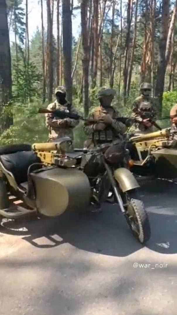Starý dobrý motocykl Dněpr, vybaven PT střelou. Ukrajinská armáda.