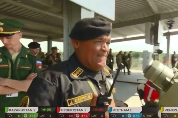 Tvář venezuelského velitele, který sleduje závod, jak je vidět ve videu, je k nezaplacení. Patrně se mu honí hlavou, co s ním a "nešťastnou" osádkou provede diktátor Maduro. Během tankového biatlonu došlo k dosti nepříjemné situaci pro osádku T-72B3 s venezuelskou osádkou. Ta do cíle dorazila s nejhorším časem ve své skupině: 47 minut a 5 sekund, téměř dvakrát déle než nejlepší posádka závodu. Během závodu se stala téměř každá myslitelná chyba: