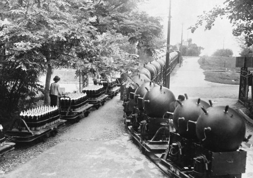 Úzkokolejka převážející dělostřelecké náboje a námořní miny. Haag, jaro 1939.