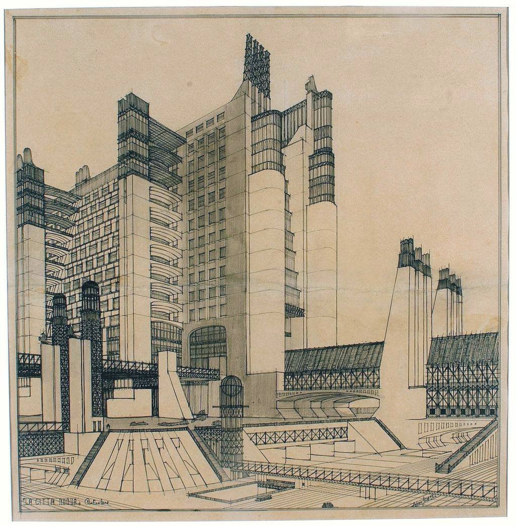 inspirován americkými architekty výškových budov (které znal jen z časopisů), rozkreslil v letech 1912-1914 sérii kreseb La Città Nuova (New City). Na těchto výkresech odpověděl na otázky týkajících se moderních budov a dopravy, např. v Miláně. Na obrázcích byly řadové mrakodrapy, nadzemní železnice a velké letiště byly umístěny na střechu hlavního nádraží. Kresby byly vystaveny v roce 1914 na výstavě skupiny architektů s názvem Nuove Tendenze. Sant'Elia byl ve své práci ovlivněn jednak italskými architekty jako byl Raimondo D’Aronco a Giuseppe Sommaruga, tak i Rakušany jako byl Otto Wagner a Adolf Loos. Díky řadě publikací ovlivnil mnoho architektů modernismu ve 20. letech 20. století, včetně Le Corbusiera. 11. července 1914 se objevil manifest L’architettura futurista (Futuristická architektura) na němž se podílel Sant'Elia. Postavené Sant'Eliovy stavby jsou však spíše klasifikací určitého stylu. V roce 1915 vstoupila Itálie do první světové války a tehdy narukoval i Sant’Elia. Následujícího roku byl zabit u Monfalcone ve věku 28 let.