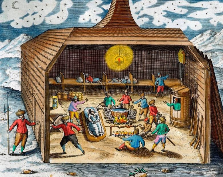 Het Behouden Huis (Útočištný dům), v němž Barents se 16 muži posádky přečkali na Severním ostrově Nové země arktickou zimu roku 1596. Holandský mořeplavec Willem Barents (1550-1597) byl jedním z významných mužů (navigátorem), kteří se pokoušeli najít Severní mořskou cestu z Nizozemí do Číny. Expedice kterou vedl Jacob van Heemskerk, objevila Špicberky a Medvědí ostrov, ze kterého pokračovala s jednou lodí k Nové zemi. Zde však bylo plavidlo uvězněno a následně rozdrceno ledem. Posádka ji však rozebrala a ze získaného materiálu postavila domek o rozměrech 7,8 x 5,5 metrů. Ani tak ale neměli muži vyhráno a museli se vypořádat s extrémním chladem. Brzy si povšimli, že jejich ponožky shoří dřív, než jejich nohy vůbec ucítí teplo ohně – a začali tedy spát s nahřátými kameny a dělovými koulemi v posteli. Použili obchodní látky vezené na palubě lodi k výrobě přikrývek a oděvů. Loď vezla solené hovězí maso, máslo, sýr, chléb, ječmen, hrách, fazole, krupici, mouku, olej, ocet, hořčici, sůl, pivo, víno, kořalku, uzený bůček, šunku a ryby. Bohužel velká část piva zmrzla a sudy praskly. Do 8. listopadu hlásil Gerrit de Veer, lodní tesař co si vedl deník, nedostatek piva a chleba, o čtyři dny později bylo již na příděl i víno. Muži byli úspěšní v chytání polárních lišek do primitivních pastí, což jim nepřímo zachránilo životy. Syrové maso arktické lišky totiž obsahuje malé množství vitamínu C, který snižoval účinky kurdějí. Posádka byla neustále napadána ledními medvědy, kteří zamořili oblast, kde tábořili. Dokonce se usídlili i ve zbytku opuštěné lodi. Primitivní zbraně obvykle nezabíjely medvědy na první nebo dokonce druhý výstřel (pokud dobře nemířily na srdce) a bylo obtížné s nimi mířit, zatímco studené a křehké ocelové zbraně se často tříštily nebo ohýbaly. Přesto se jim podařilo přežít a uskutečnit tak první úspěšné přezimování Evropanů v Arktidě. V lednu 1597 byli poprvé svědky tajemné polární záře. Do června led stále neuvolnil sevření lodi a zbývající přeživší, kteří přečkali kurděje, vyrazili ze zimoviště ve dvou záchranných člunech k návratu domů. Zatímco většina mužů plavbu přežila, Barents na počátku zpáteční cesty zemřel - dne 20. června 1597. Zbytek posádky dovesloval až k poloostrovu Kola, kde se setkal s holandskou lodí, která se vydala po jejich stopách. Na otevřených člunech trosečníci celkově urazili 2 600 km. Prvního listopadu 1597 se přeživší členové expedice vrátili do Amsterdamu. Rok pro návratu zachráněné expedice byla na základě Barentsových pozorování a zápisů vydána první mapa Arktidy. Poznatky o meteorologických jevech a hydrologická měření přispěly k rozvoji rybolovu v severních mořích. V roce 1871 bylo na Nové zemi objeveno v zátoce na 76° s. š. zachovalé obydlí Barentsovy výpravy, kde se mimo jiné našel v komíně i deník s jeho záznamy. Jméno Willema Barentse dnes nesou Barentsovo moře, Barentsův ostrov a osada Barentsburg na Špicberkách, též množství institucí a podobně.