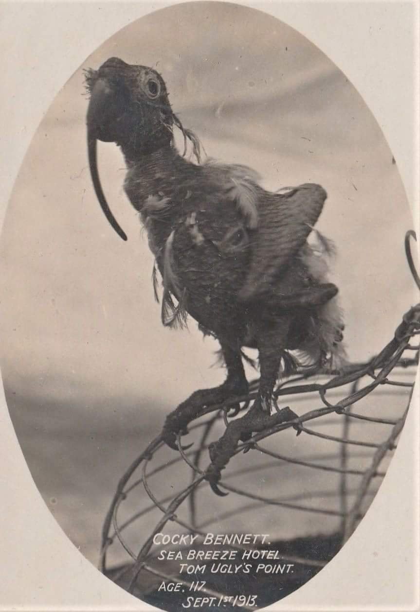 Poblíž australského města Sydney se roku 1796 místní farmář rozhodl pořídit si domácího mazlíčka. Vyšplhal tedy na vzrostlý eukalyptus a z hnízda vybral jedno mládě papouška kakadu žlutočečelatého. Tehdy ještě nikdo netušil, jak dobrodružný život tohoto opeřence čeká. Prvních 78 let papoušek cestoval po světě spolu s kapitánem Ellisem, po jehož smrti byl odkázán panu a paní Bowdenovým. Brzy po smrti pana Bowdena v roce 1889 se jeho manželka Sarah provdala za Charlese Benneta. Pár se spolu s papouškem přestěhoval roku 1891 do Tom Ugly’s Point v Blakehurstu, kde se pan Bennet provozoval hotel Sea Breeze. Právě zde byl populární kakadu k vidění pod jménem Cocky Bennet a prožil zde svých posledních 25 let. Pokud vás zaujal Cockyho neutěšený vzhled, tak jde o důsledek virového onemocnění circovirid, díky čemuž ve sto letech přišel o většinu peří, zobák dorostl úctyhodné délky a musel být krmen kašemi. Přesto byl papoušek pěkně ukecaný a známy jsou jeho výroky "o jedno pírko víc a uletím" nebo "jeden po druhém, pánové, prosím". Když dostal "doušek silného vína" byl smělejší a ještě upovídanější. Byť trpěl zmíněným onemocněním, které rovněž snižuje imunitu, zemřel Cocky Bennet až v květnu 1916. Pokud jde o samotný věk, tak kakadu žlutočečelatí se v průměru dožívají sedmdesáti let. Ornitologové spočítali roční přírůstky na Cockyho zobáku a potvrdili věk 120 let. Krátce před smrtí, se o papouška staral synovec pana Benneta, jistý Murdoch Alexander Wagschall. Právě on rozhodl, že Cockyho ostatky nechá vycpat u firmy Tost and Rohu a umístí do skleněné vitríny. Až do třicátých let zůstal v hotelu Woolpack v Canterbury a dalších 40 let zůstával v domě paní P. Wagschall. Její potomci papouška se všemi dokumenty předali Kogarah Historical Society a byl tak uložen do muzea v Carss Cottage v Carss Bush Park. V květnu 1973 jej mohli prozkoumat zmínění ornitologové a potvrdit jeho věk.
