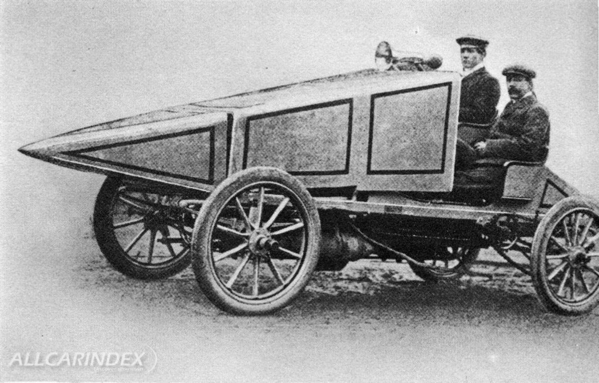 Britský závodní automobil General 40 HP z roku 1902. Poháněl jej čtyřválec o objemu 4562 ccm a výkonu 29,4 kW. Rychlost tohoto jehlanovitého skvostu činila až 113 km/h. Jde o pozoruhodný příklad aerodynamické klínové přední kapotáže, poněkud hrubé, ale racionální. Další pyramidální klín najdeme i vzadu. Tímto můžete bez obav projet stádem jelenů, nebo špatně umístěnou hospodou.