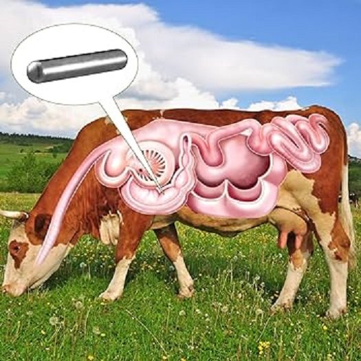 Krávy jsou zvědavá zvířata a často se pasou na polích, kde se mohou setkat s malými kovovými předměty, jako jsou hřebíky, skoby nebo různé dráty. Když kráva tyto předměty pozře, mohou jí uváznout v žaludku a ohrozit zdraví zvířete v podobě podráždění či protržení stěny v trávicím traktu. Pokud se neléčí, může vést ke snížení produkce mléka, hubnutí a dokonce i smrti. K zajištění zdraví skotu je tedy dobré zavést bachorový magnet všem zdravým zvířatům. Ten má za úkol zachytit zmíněné kovové předměty již v bachoru. Jedná se o vícepólový magnet (magnetické póly se střídají po celé délce magnetu), což přispívá k lepšímu přichytávání kovových, zejména železných dílů. Snižuje se tak potřeba invazivních chirurgických zákroků k odstranění požitých kovových předmětů, čímž se šetří čas a finance. Dobrému farmáři se může hodit též jícní roura, která slouží k uvolňování plynů z bachoru, případně jejím prostřednictvím můžete zvířeti podat roztok s lékem přímo do žaludku. Pokud vám vrtá hlavou, proč kráva žere kovové předměty, tak je to tím, že kráva na rozdíl od ovce sousto trhá - nemá chápavé pysky jako zmíněná ovce. Její horní pysk je poměrně tvrdý a tak když spásá, v podstatě omotává a trhá pohybem hlavy a jazyka nikoliv pysku jako je tomu u menších přežvýkavců. Magnet používají hodně lidé co pasou okolo silnic, kde se dávají zábrany na zimu proti sněhu. Ty většinou bývají poměrně dost rozbité a tak se jednoduše stane, že něco upadne a kráva to následně se soustem spolkne. Hrozí potom protržení bachoru případně bránice a následná sepse. Dokonce se muže stát že to propíchne i osrdečník a tomu se potom říká "chlupaté srdce" - je obalené fibrinem a znemožní to srdci fungovat. Obzvlášť hnusná a pomalá smrt.
