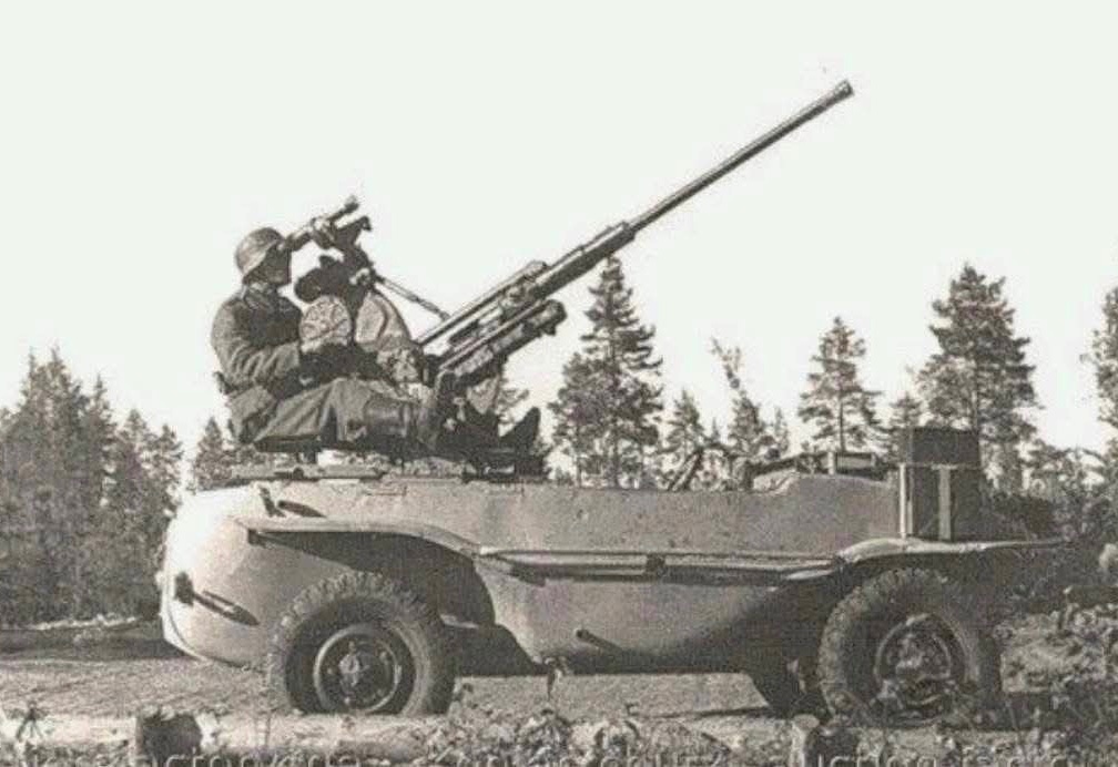Schwimmwagen osazený 2 cm horským flakem (Gebirgsflak 38).