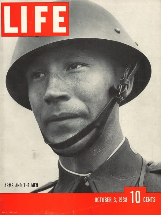 Československý voják na obálce časopisu LIFE (vydáno v USA 3. října 1938). Autorkou fotografie je Margaret Bourke-White (1904-1971), a snímek zachytila 4. dubna 1938 na Podkarpatské Rusi. Oním vojákem je podporučík J. Denemark rodák z Prahy.