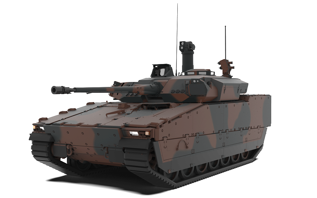 Propagační snímek modernizovaného CV90 s novou věží, systémem aktivní ochrany atd., pro holandskou armádu.