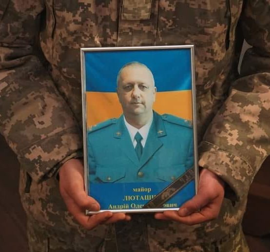 Dne 8. března zahynul při bojovém letu major Andrij Oleksandrovič Lutašin (47 let), vedoucí taktického výcviku a letecké střelby ze 40. brigády taktického letectva, vybavené stíhačkami MiG-29. Ukrajinská strana mu připisuje provedení tzv. "hořícího taranu", kdy při obraně Kyjeva nasměroval svůj hořící letoun na kolonu ruské vojenské techniky. Se slovy "Kluci, budeme žít!" Pohřben byl 7. dubna ve městě Mukačevo na Zakarpatí. O čtyři dny později mu byl posmrtně udělen titul Hrdina Ukrajiny "za osobní odvahu a hrdinství při obraně státní a územní suverenity Ukrajiny a věrnost vojenské přísaze".