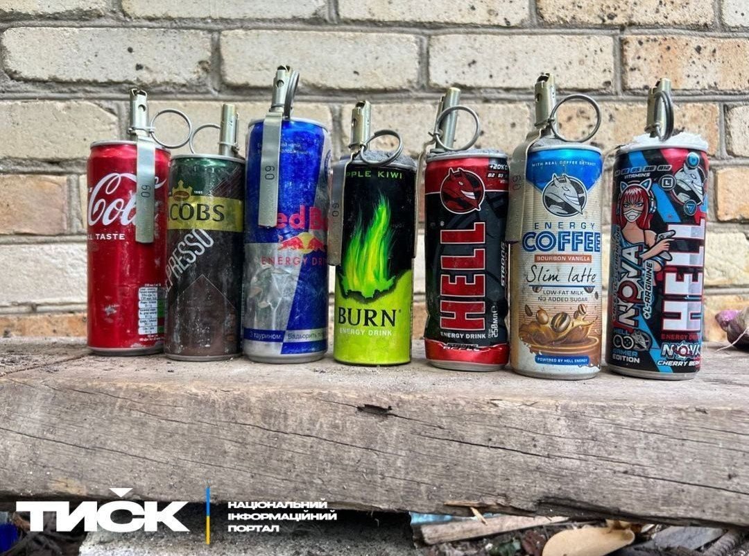 Podomácku vyrobené granáty, přičemž každá z plechovek je naplněná výbušninou. Ta se odpaluje pomocí UZRGM (univerzálním zapalovačem ručních granátů modernizovaným), který se aktivuje v okamžiku vypuštění z ruky při hození granátu. Zpoždění výbuchu činí cca 3,2–4,2 sekundy.
