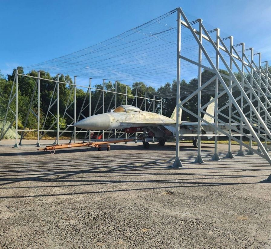 V Rusku jsou klece k ochraně proti dronům i pro letadla. Můžeme vidět i jakýsi MiG-29 v důchodu.