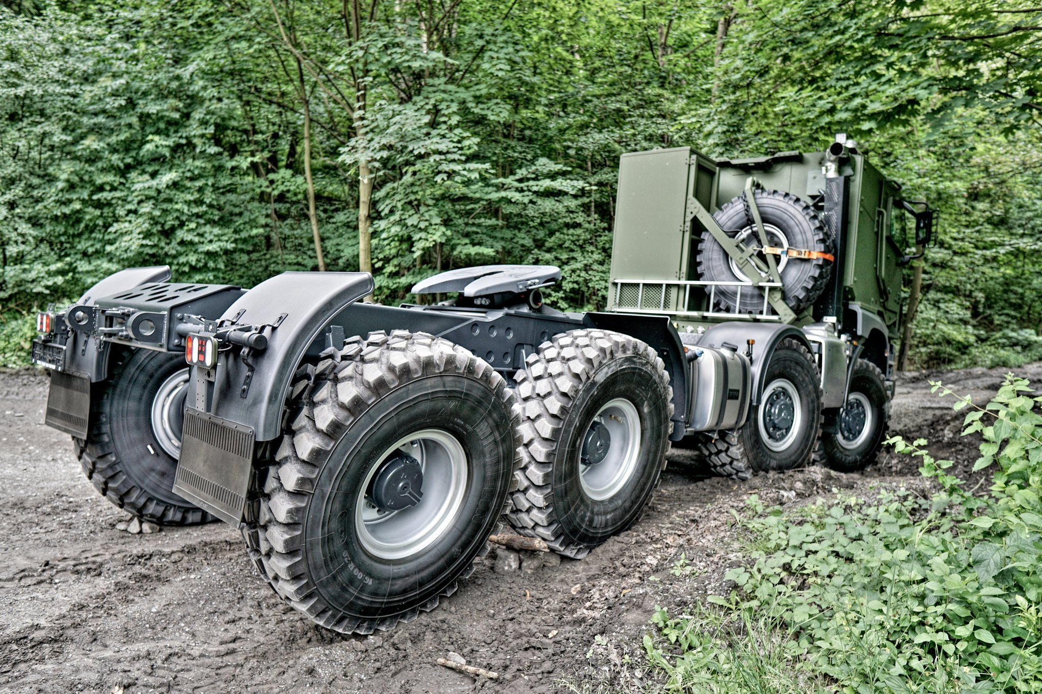 Tahač Tatra T 158-8P5N43 8x8.1R s pancéřovanou kabinou. Motor Paccar MX13 o výkonu 355kW, automatická převodovka Allison. Maximální hmotnost soupravy 120 tun.